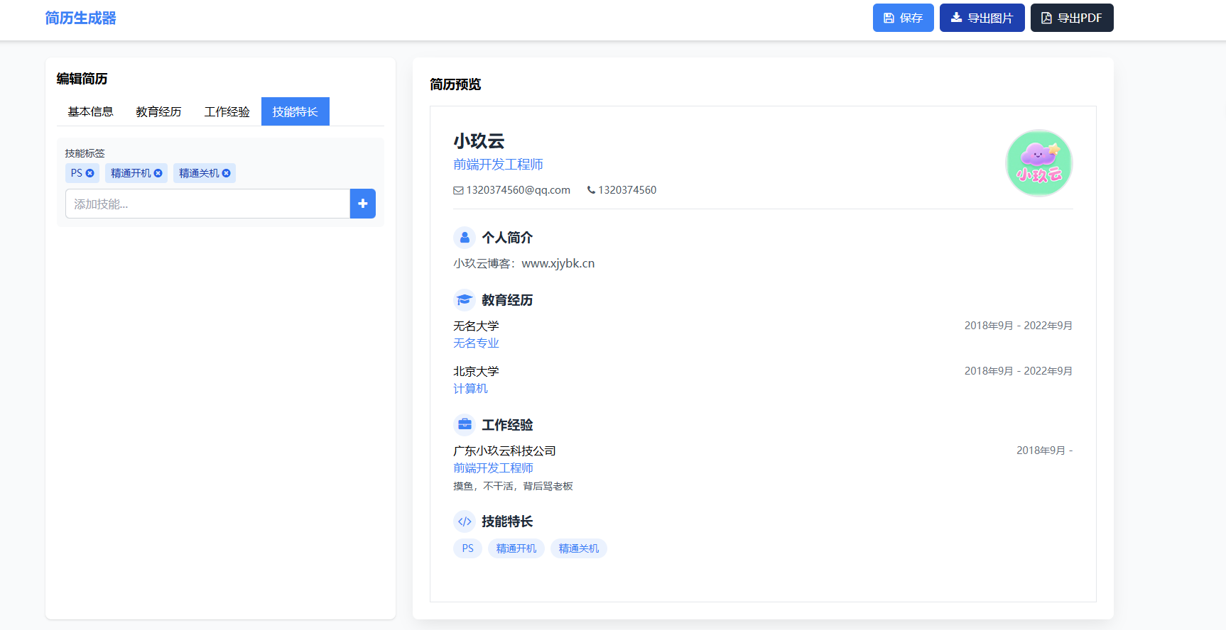 • 简历在线生成器源码 - 让简历制作更简单