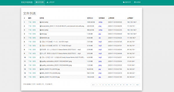 彩虹外链网盘,是一款PHP网盘与外链分享程序,支持所有格式文件的上传,可以生成文件外链、图片外链、音乐视频外链,生成外链同时自动生成相应的UBB代码和HTML代码,还可支持文本、图片、音乐、视频在线预览,这不仅仅是一个网盘,更是一个图床亦或...
