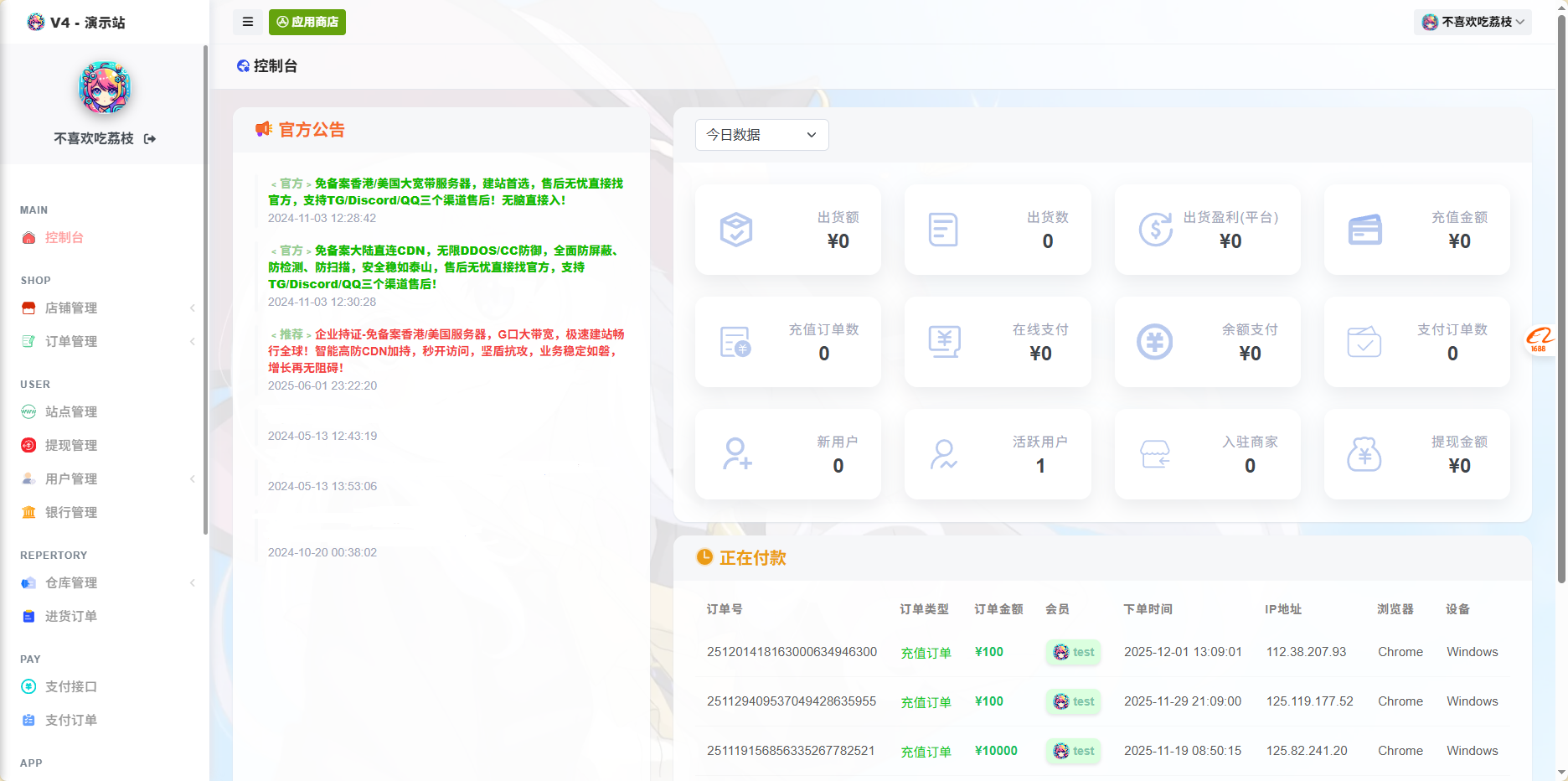 - 多样化的发货方式:通过安装不同的发货插件,如虚拟卡密、游戏账号、实体商品实时物流、游戏充值业务、账号充值业务等,满足各种业务需求。