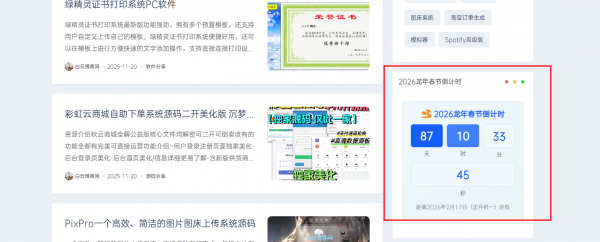 <!-- 2026龙年春节倒计时代码 - 适配Emlog侧边栏 -->