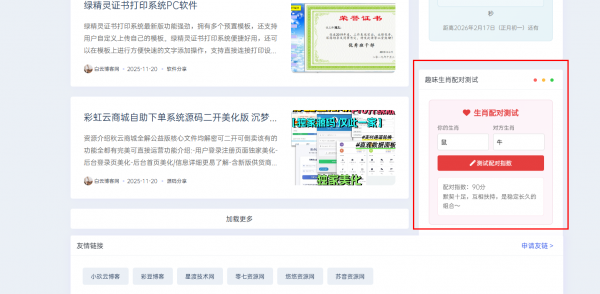 <!-- 生肖配对测试 - Emlog侧边栏 -->