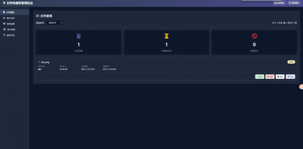 4.支持文件封禁,封禁后输入取件码跳到封禁也面,直链也是一样跳到封禁页面,拥有后台登录后台可以审核封禁文件,文件到期后会跳到文件过期界。