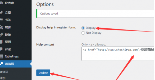 在插件设置可以填写邀请码获取方式的链接。