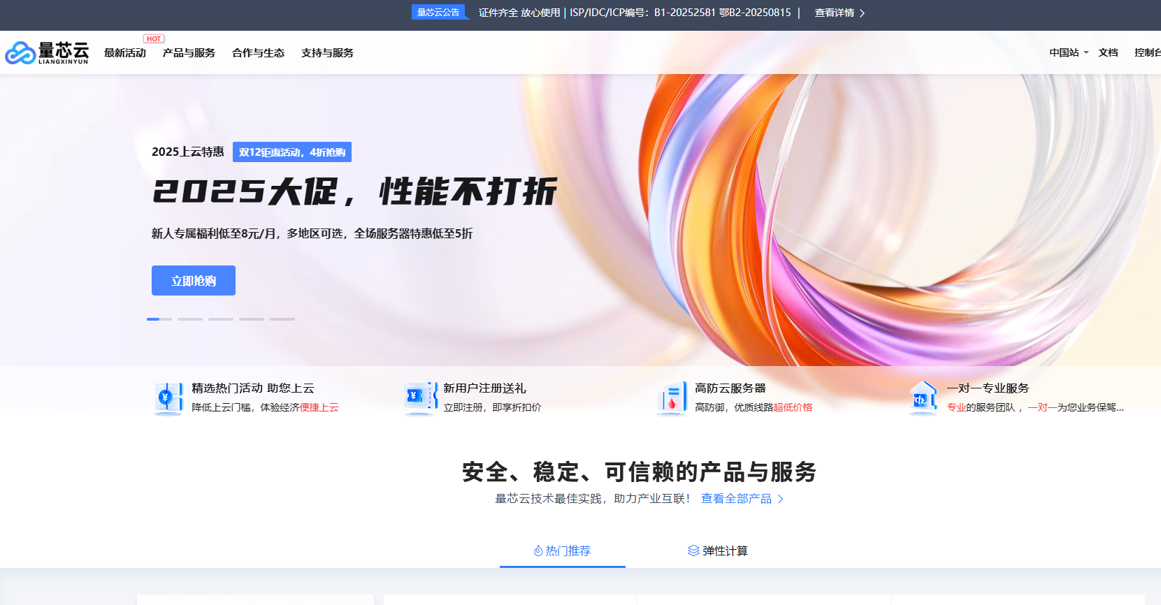 量芯云专注香港及国内数据中心运营,提供CN2高速直连香港云服务器、300G+专业DDoS高防服务器、BGP智能线路云主机。全系配备SSD存储与24小时运维监控,支持弹性扩容与免费试用。企业级香港CN2、国内高防IP、机柜租用解决方案,保障业...